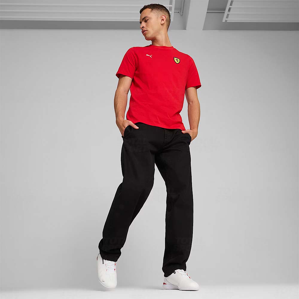Prepárate para la pole position con estilo. Con esta polera vibrante, representarás tu lealtad a la Scuderia Ferrari con un logotipo de color bordado y un detalle PUMA Cat. De manga corta y corte estándar, lucirás un look cómodo inspirado en los deportes de motor.